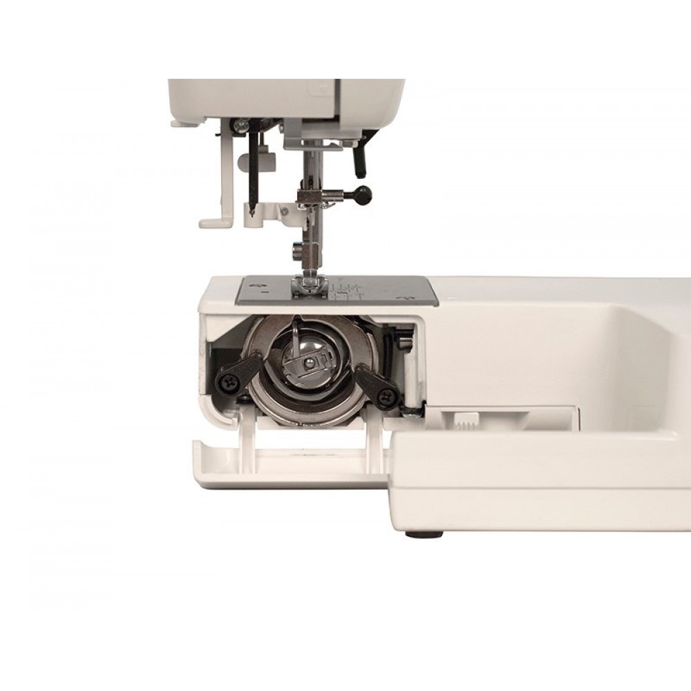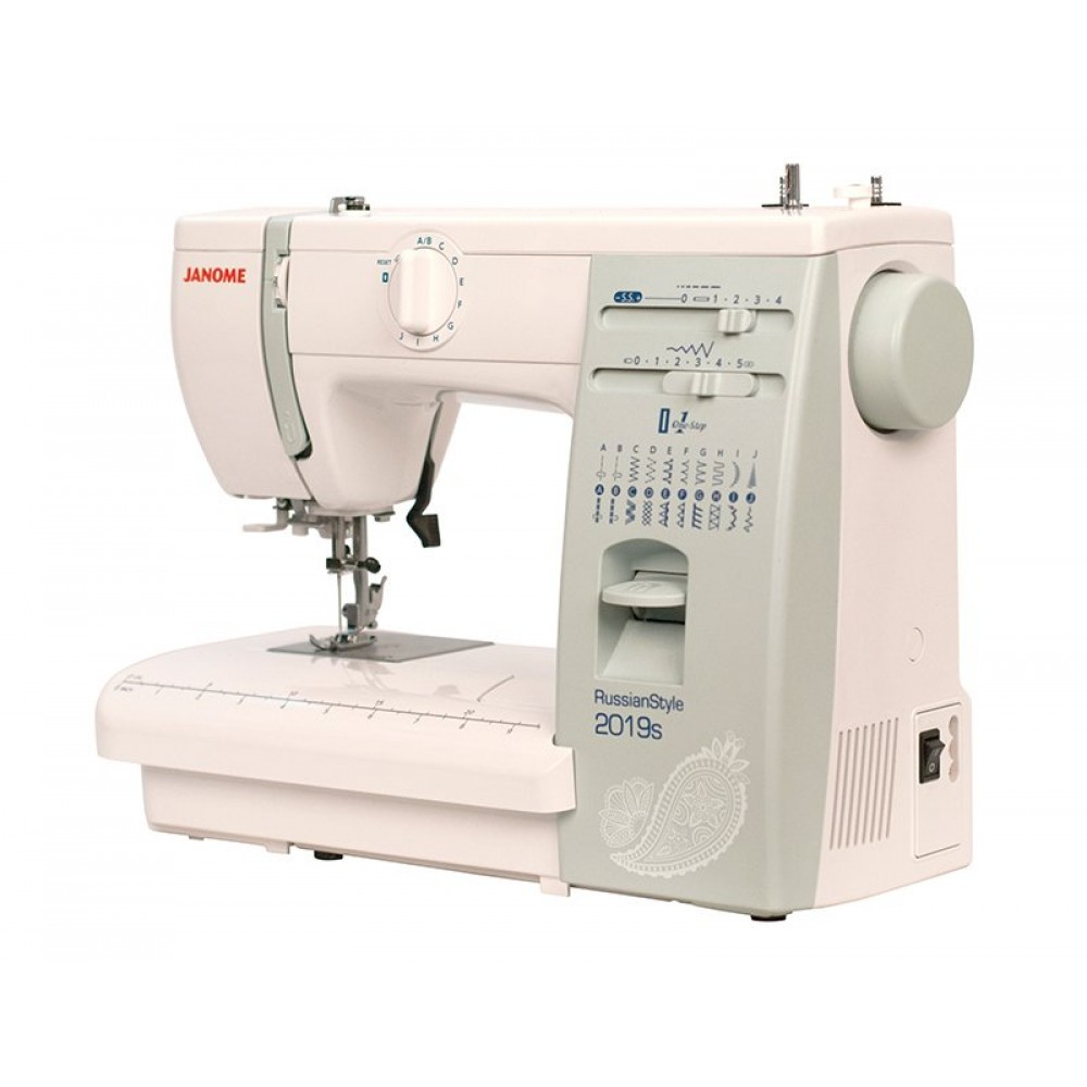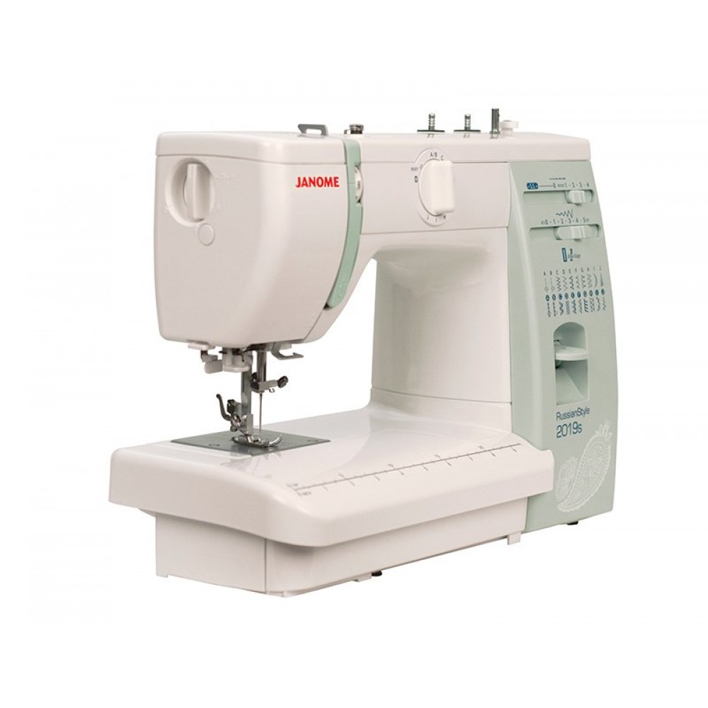 Janome RussianStyle 2019s имеет металлическую станину и встроенный нитевдеватель, чтобы с лёгкостью вдеть нить в иглу. Для удобства шитья на панель нанесена разметочная линейка в сантиметрах и дюймах. Janome RussianStyle 2019s будет отличным выбором и для опытных портних, и для новичков, желающих приобщиться к миру шитья.