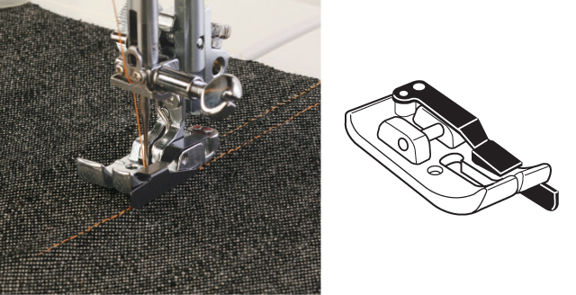 - Прошейте, направляя край вдоль направителя на лапке, который будет точно удерживать припуск в 0,6 см.