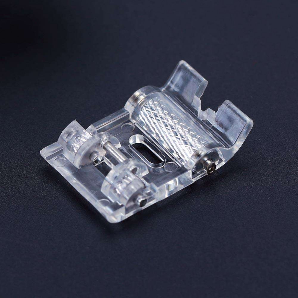 Роликовая лапка для швейных машин с вертикальным челноком ширина прорези 5 мм. Название лапки предполагает наличие роликов, которые катятся по ткани. Ролики, как гусеницы бульдозера, идеально проходят через толстые швы и неравномерные слои ткани . Используется для шитья толстых тканей, ролики легко передвигаются между лапкой и транспортёром, позволяя беспрепятственно проходить через слои различной плотности. Также используется для шитья по коже и винилу. Применяется при шитье сложных тканей, таких как вельвет, бархат, замша, трикотаж.