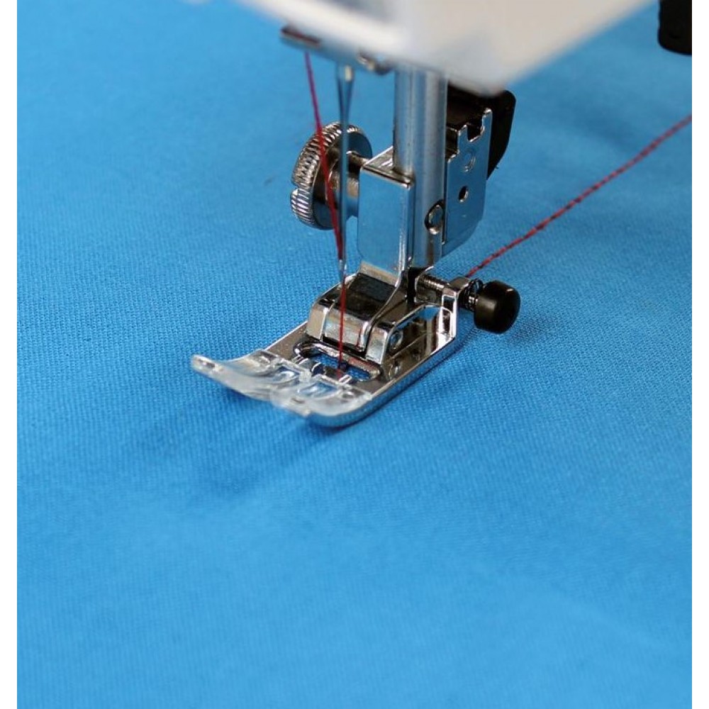 Универсальная лапка А изначально установлена в машине. Черная кнопка с правой стороны лапки фиксирует её в горизонтальном положении, что позволяет плавно прошивать тяжелые ткани. Данная лапка имеет центральную прорезь на подошве для более точного направления ткани во время шитья.Универсальная лапка А (артикул 832-523-007) предназначена для швейных машин Janome с горизонтальным челноком и шириной зигзага от 5 до 7 мм.