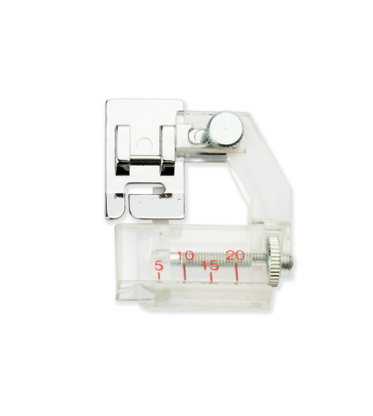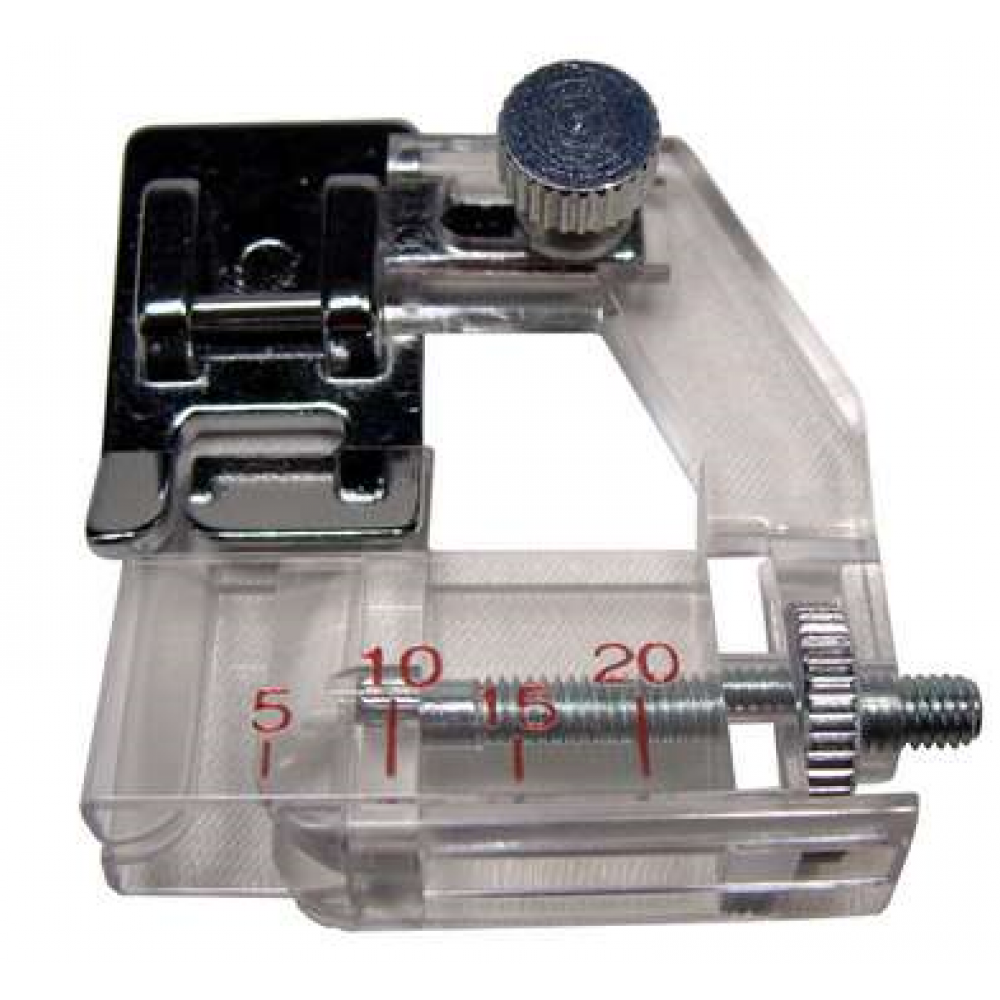 С помощью лапки-окантователя для косой бейки, Вы сможете удобно и красиво выполнить окантовку срезов ткани шириной от 5-ти до 20-ти мм! Данная лапка не заворачивает срезы бейки вовнутрь. А работает с готовой бейкой (с заутюженными к середине краями).