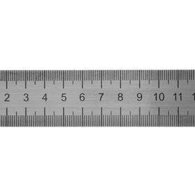 Линейка металлическая обладает достаточной гибкостью, чтобы изгибаться по округлым поверхностям и после восстанавливает свою первоначальную ровную плоскость. Основной разметочный шаг составляет один сантиметр, промежуточный – 5 миллиметров, и дополнительная измерительная риска – в один миллиметр. Разметка нанесена на металле высококачественной краской, устойчивой к продолжительным истиранием, что определяет длительную функциональную пригодность данного измерительного инструмента.
