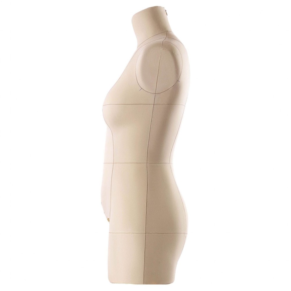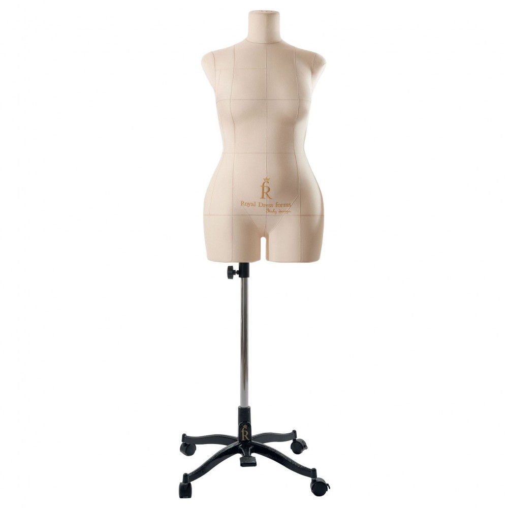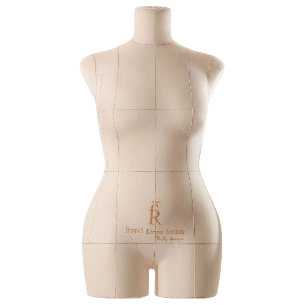 Женский манекен «Моника» с подставкой «Милан» от ROYAL DRESS FORMS 46 размера рассчитан на использование профессиональными портными в условиях швейных фабрик и ателье по пошиву одежды. Изготовлен из высокоэластичного полимерного ударопрочного материала и обтянут бежевым чехлом из натурального хлопка. На поверхность нанесена конструкторская разметка с основными линиями баланса.