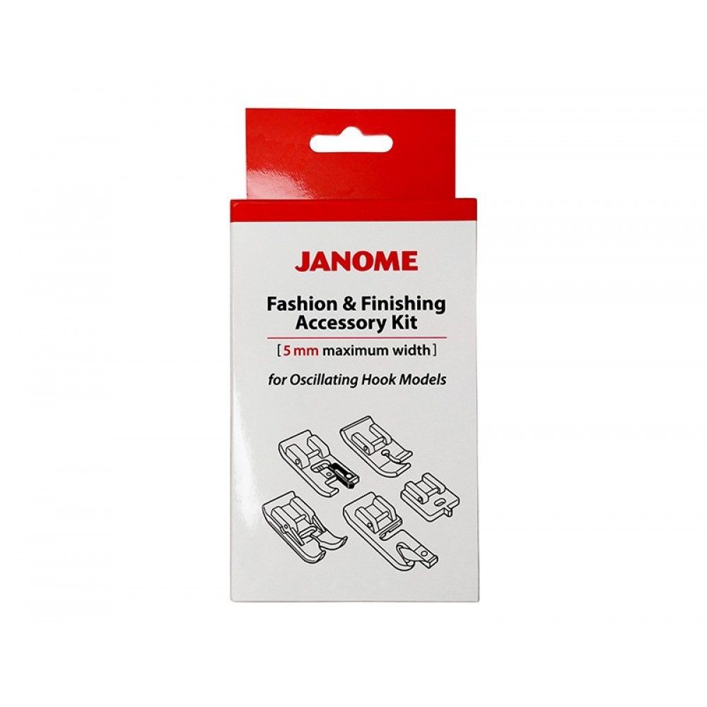 Набор лапок Janome 202-476-003 подходит для швейных машин с вертикальным челноком и шириной зигзага до 5 мм. В этот комплект входят 5 различных прижимных лапок, которые облегчают процесс шитья.