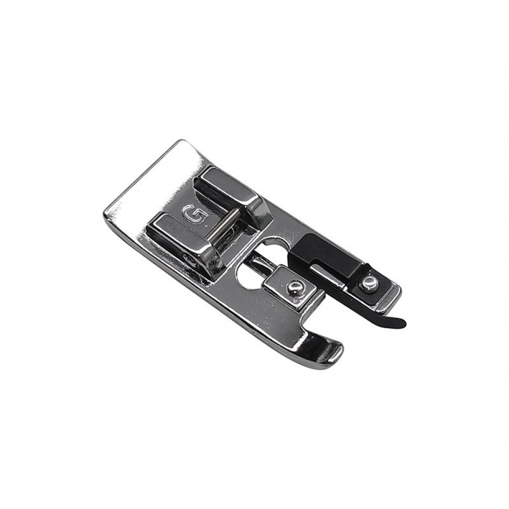 Данная лапка применяется для получения идеальной прямой строчки. Круглое отверстие для иглы хорошо удерживает материал и позволяет избежать сосбаривание ткани. Незаменим при работе с трикотажем, тонких и воздушных тканей.