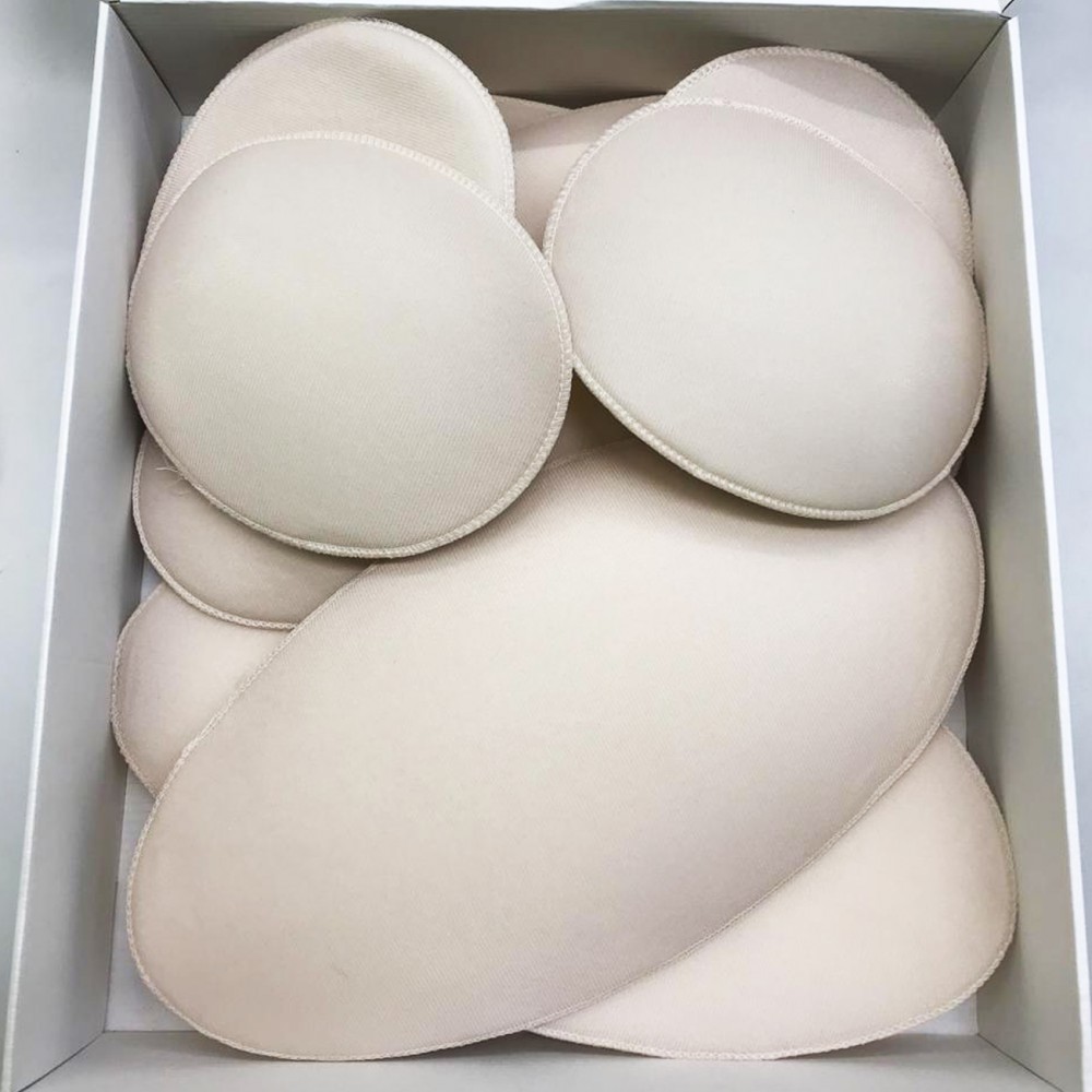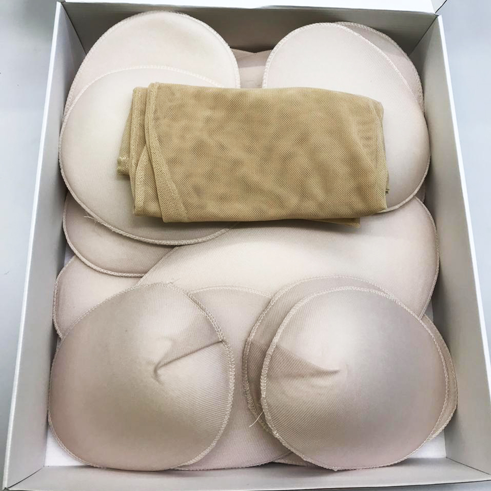 В комплекте 12 накладок бежевого цвета + телесный, полупрозрачный эластичный чехол на манекен 40-44 размера для фиксации.