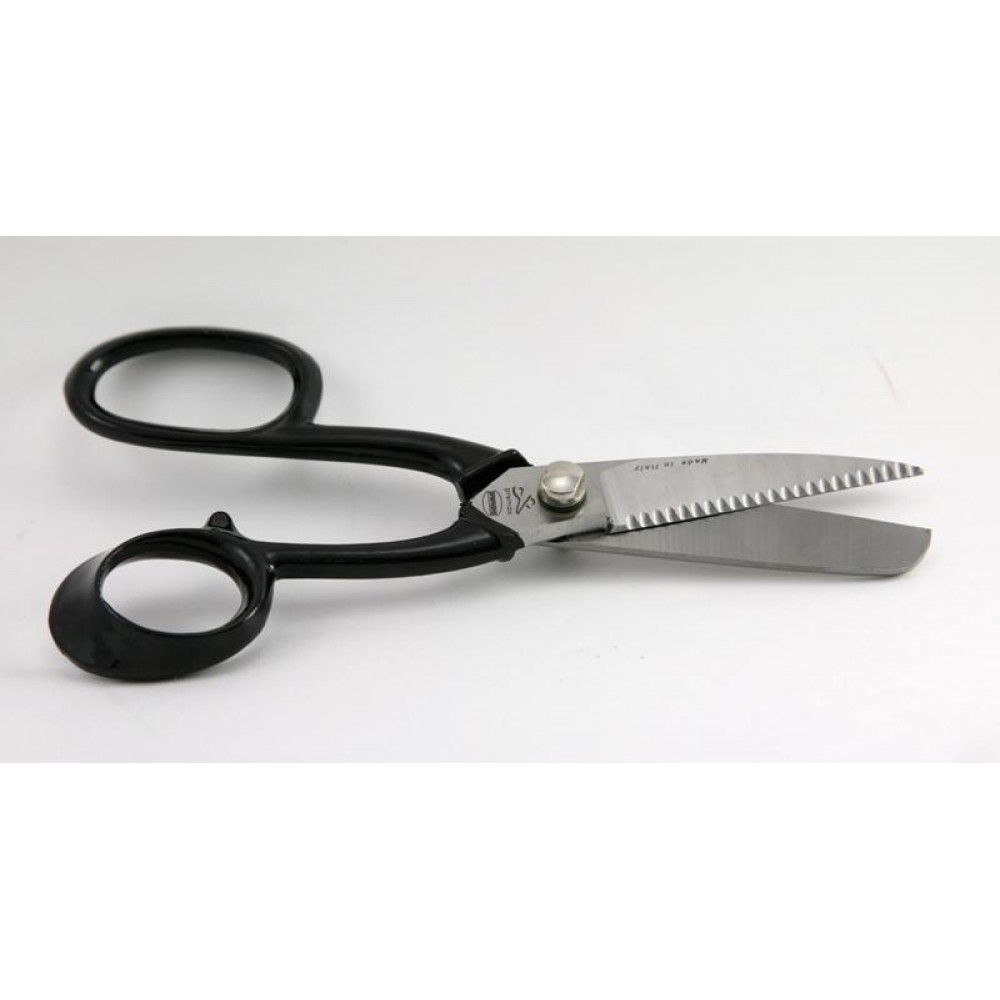Изготавливаются из нержавеющей стали повышенной прочности, имеют особо режущую поверхность. Характерная заточка - с микрозубцами, позволяет ножницам добиться особого скольжения. Такие лезвия не заминают и не стягивают кожу и скользкие ткани, режут легко и равномерно.Ручки эргономичной формы удобны в использовании.