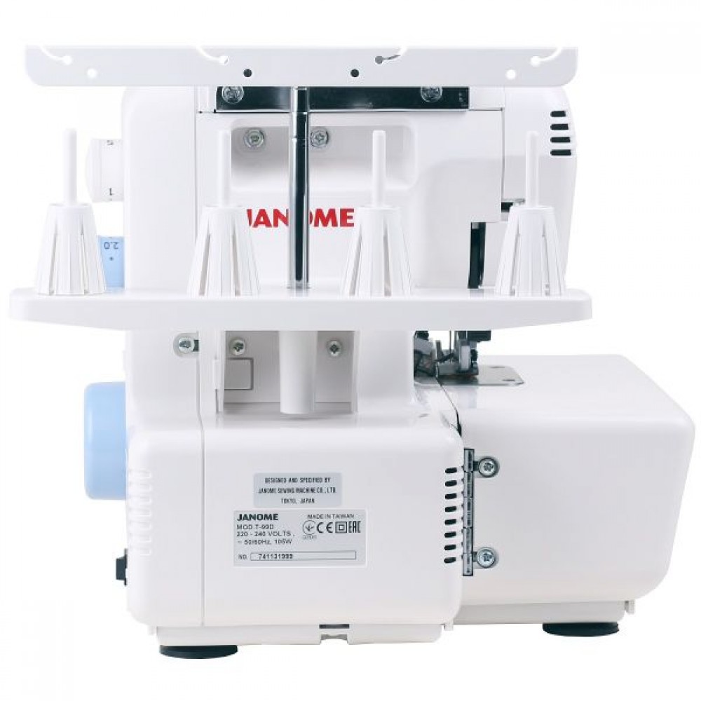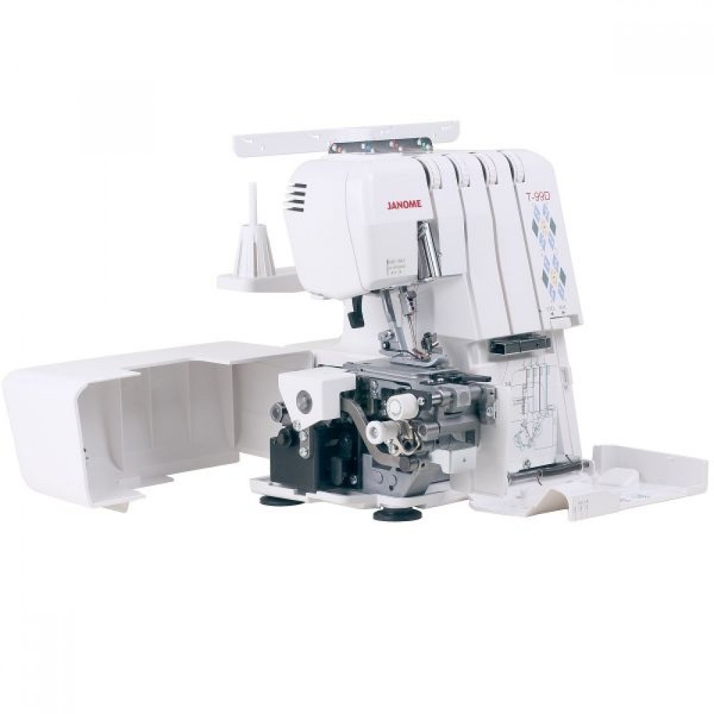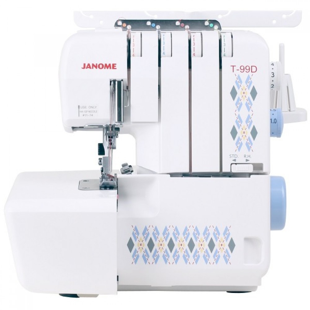 Janome T-99D выполняет 2/3/4 ниточные швы, имеет в комплекте мусоросборник и работает с различной плотностью тканей.