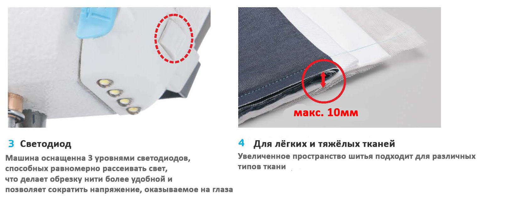 | Тип тканиЛёгкие-средние | Длина стежкаДо 5мм | Скорость шитья4000 об/мин |