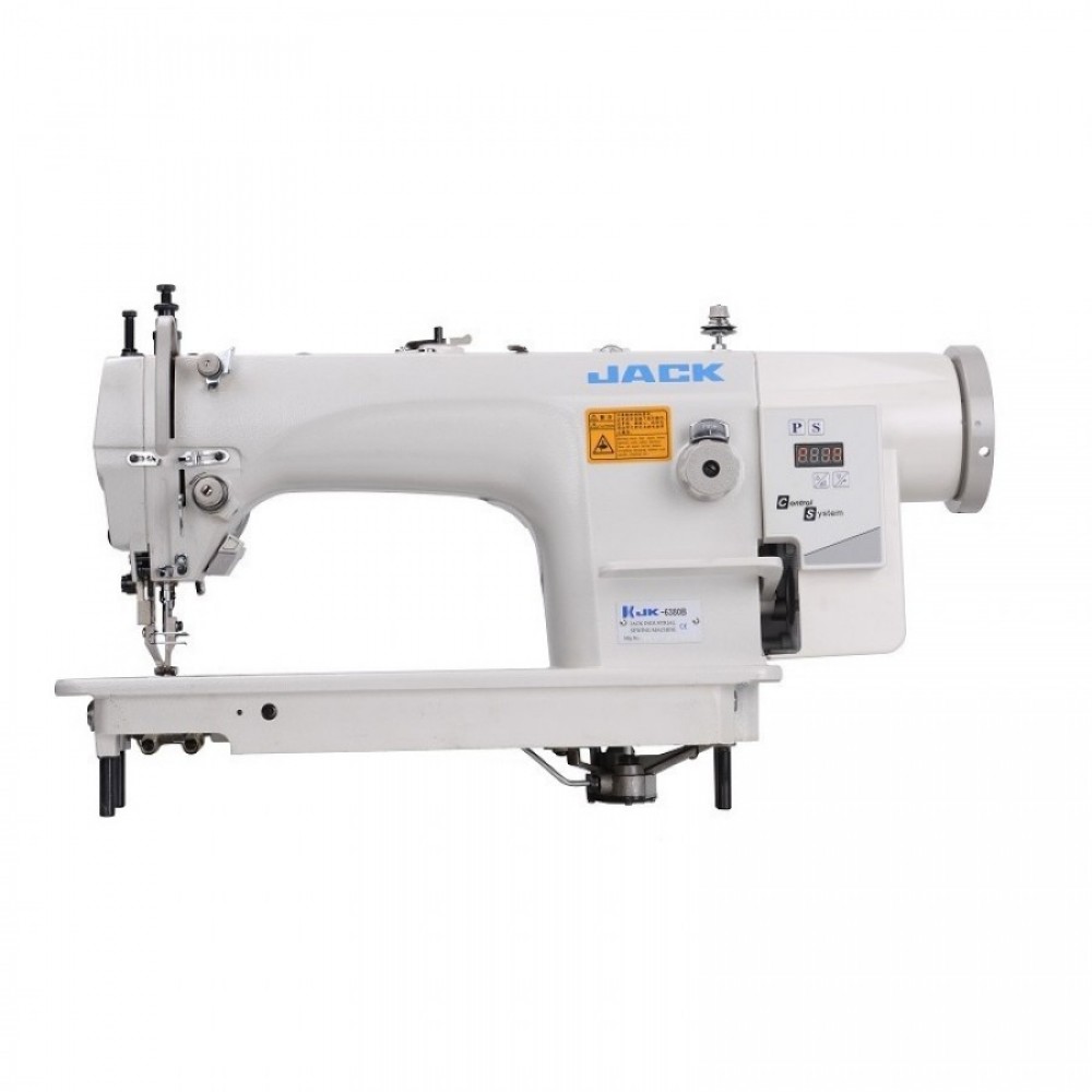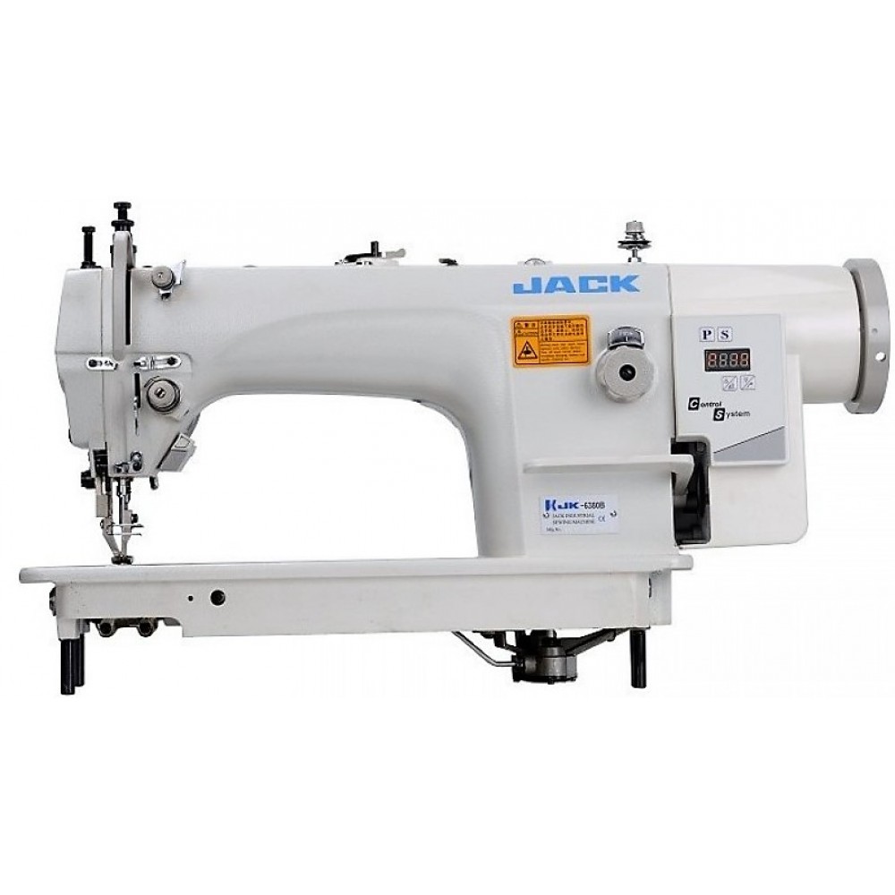 Промышленная швейная машина Jack JK-6380BC-Q – одноигольная прямострочная машина с двойным продвижением (шагающая лапка) и со встроенным в голову блоком управления с сервомотором, со светодиодной подсветкой области шитья.