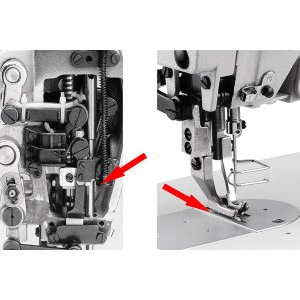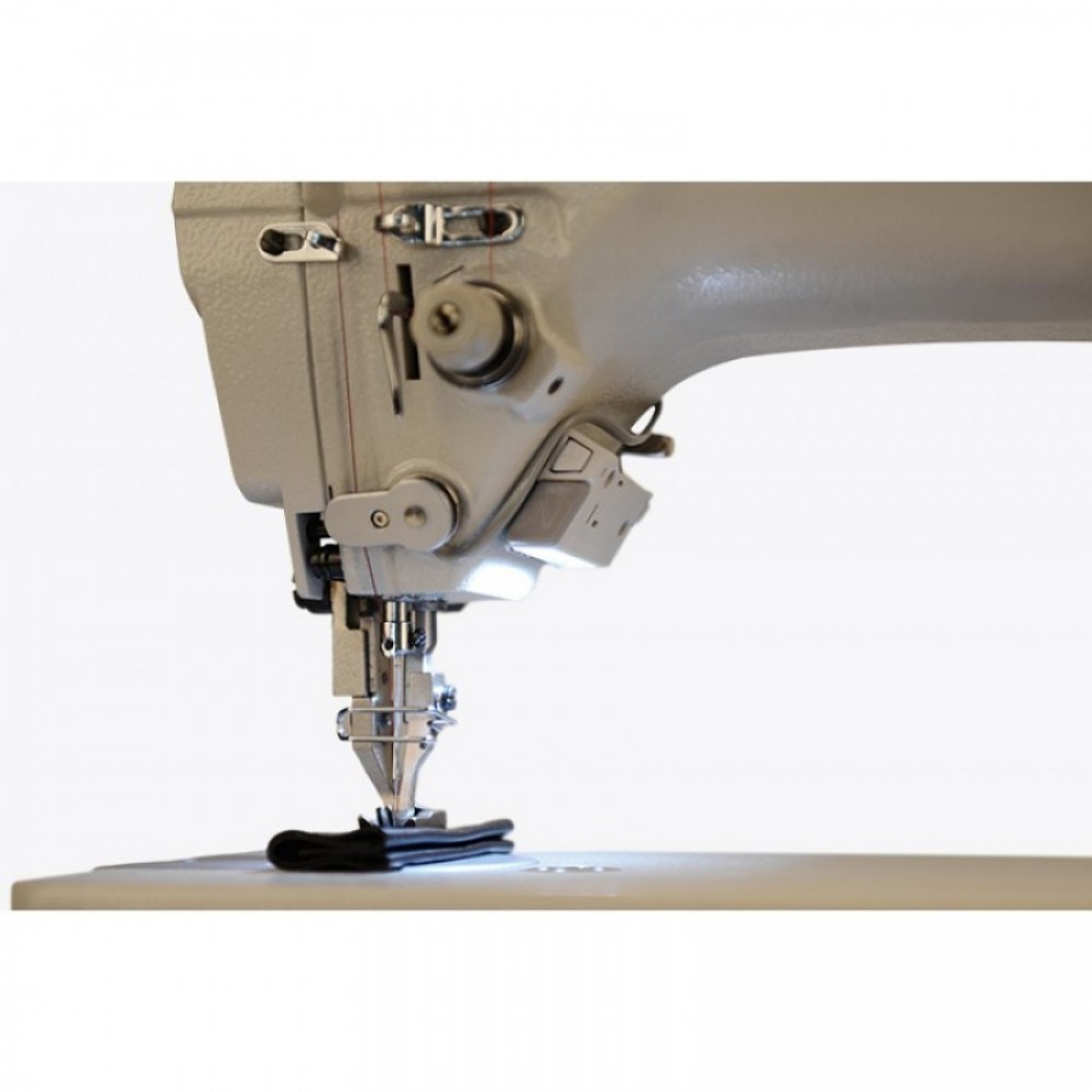 Машина оборудована двухниточным челночным стежком со встроенным сервомотором с позиционером иглы и автоматической смазкой.