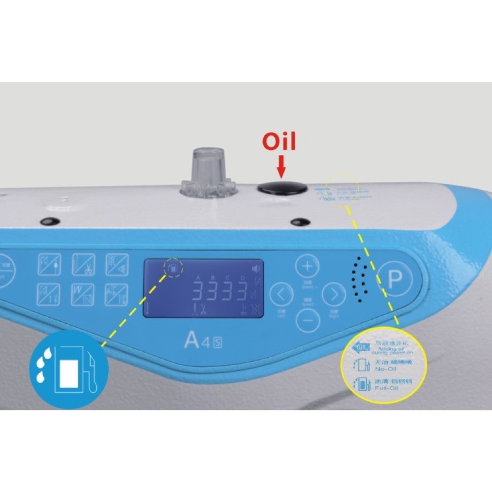 - Масло хранится в герметично изолированном маслосборнике, который встроен в головку машины, что эффективно предотвращает проблемы с утечкой масла и с появлением масляных пятен, что обеспечивает для вас гарантированно чистое шитье ваших ценных изделий.