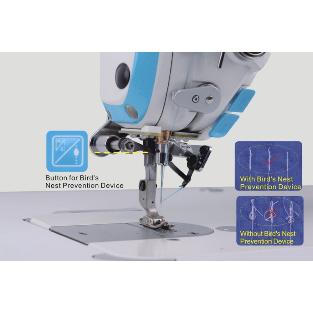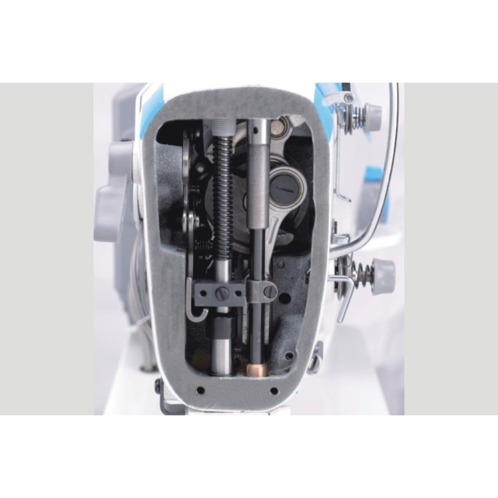 Сервомотор обеспечивает возможность плавного старта и тихого хода, и значительно экономит потребление электроэнергии, а так же есть возможность регулировки скорости шитья.