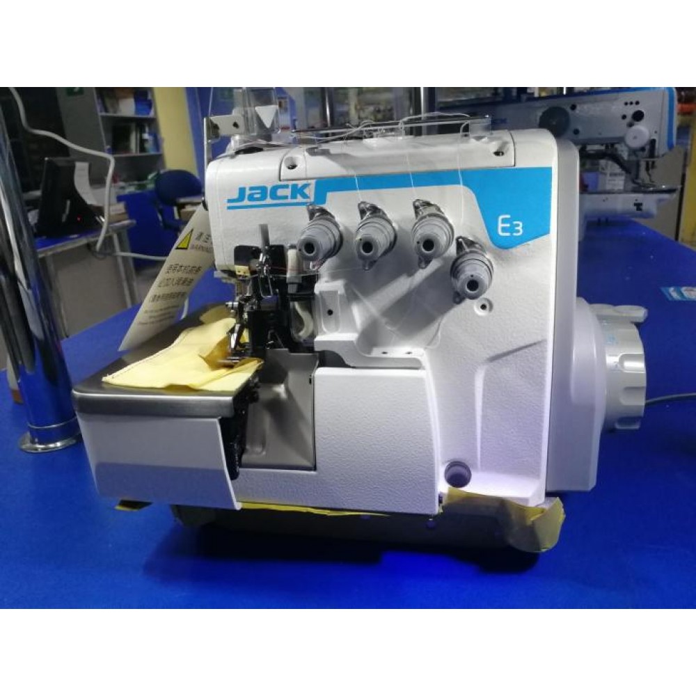Jack JK-E3-4-M2-24 – высокоскоростной промышленный 2-х игольный 4-х ниточный оверлок со встроенным серводвигателем. Ширина обметки 4.0 мм.