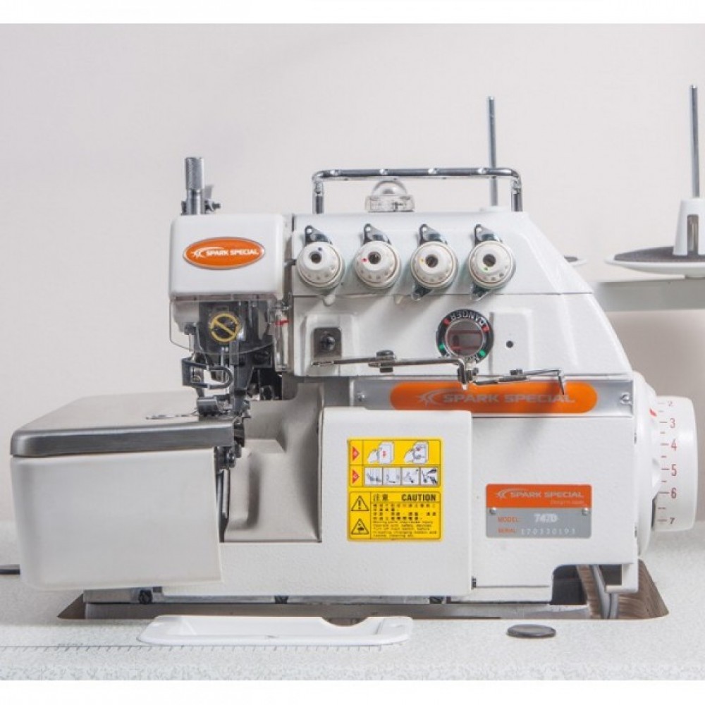 Spark Special 747D Промышленный четырехниточный оверлок со встроенным сервомотором. Используется в производстве изделий из трикотажа, где требуется стачивающе-обметочный шов: футболки, спортивные костюмы и прочее.