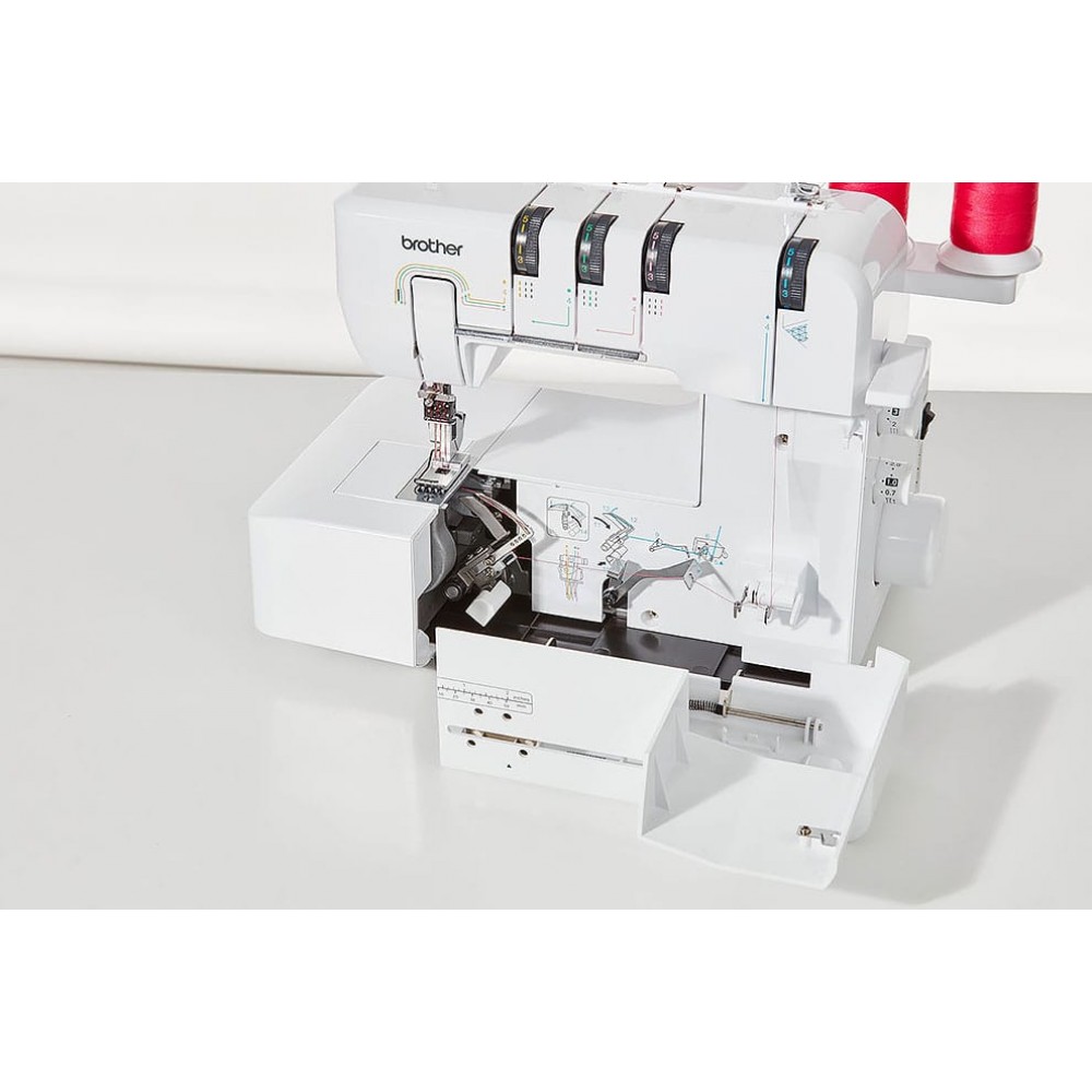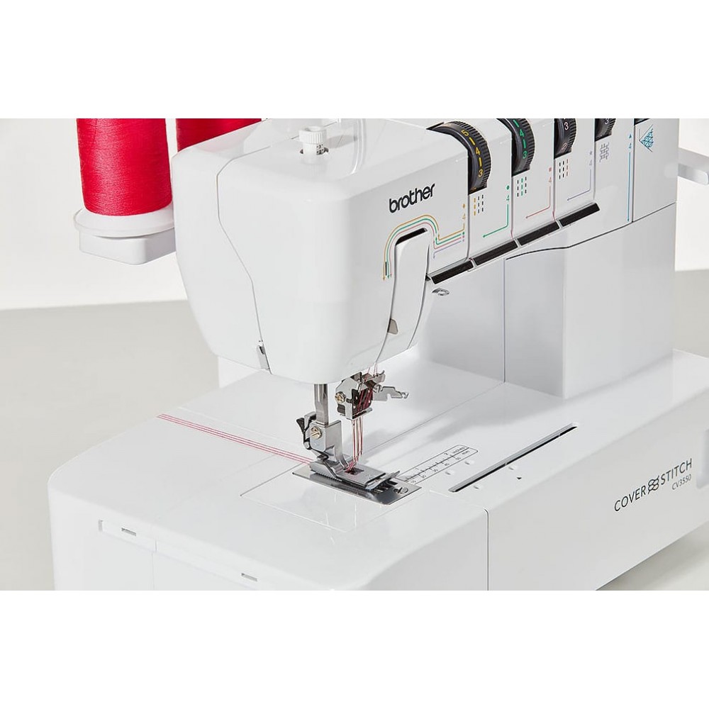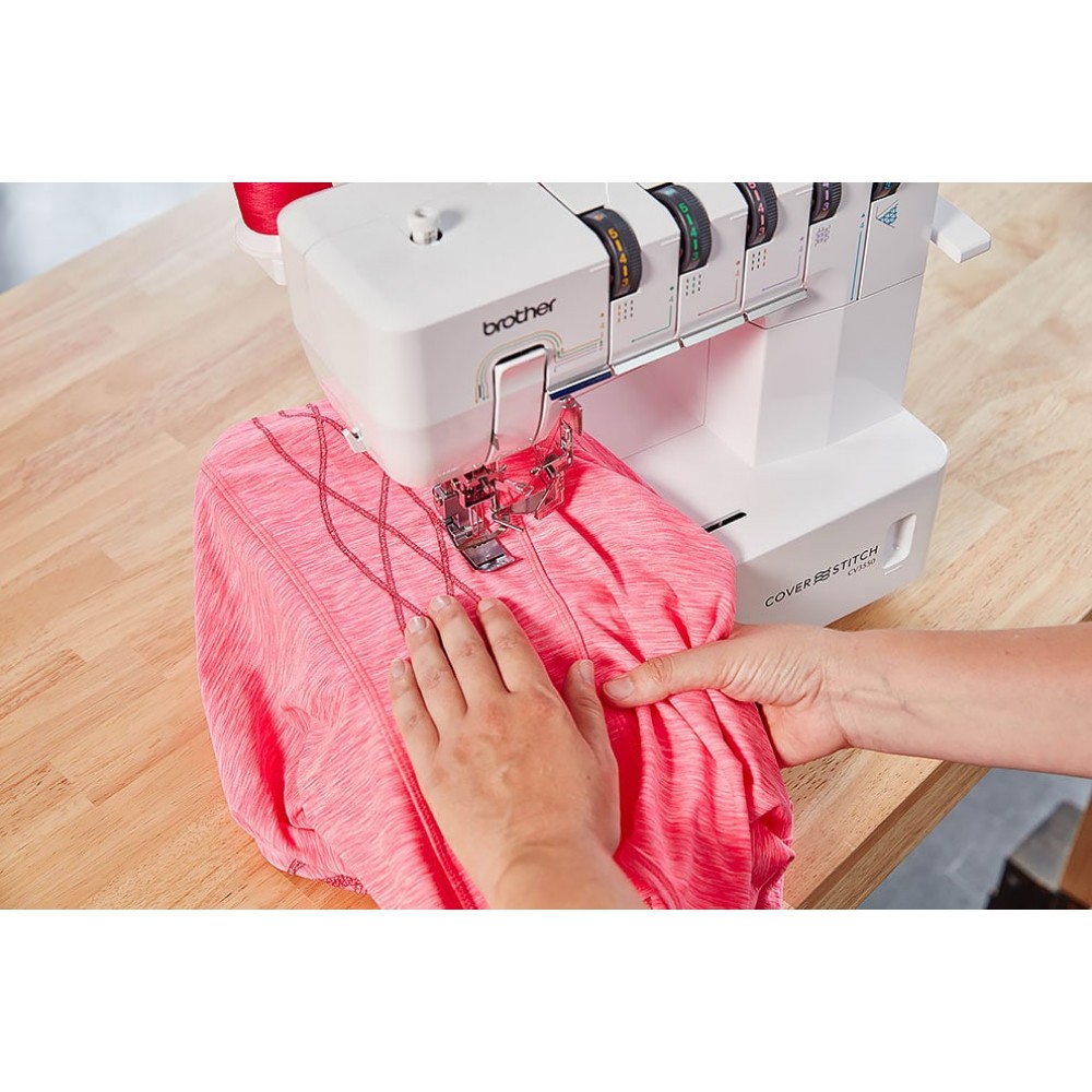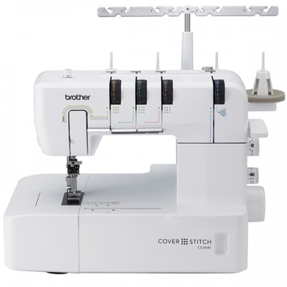 Распошивальная или плоскошовная швейная машина Brother CV3440 имеет четыре вида швов. Относительно неплохо зарекомендовала себя с работой над трикотажем.