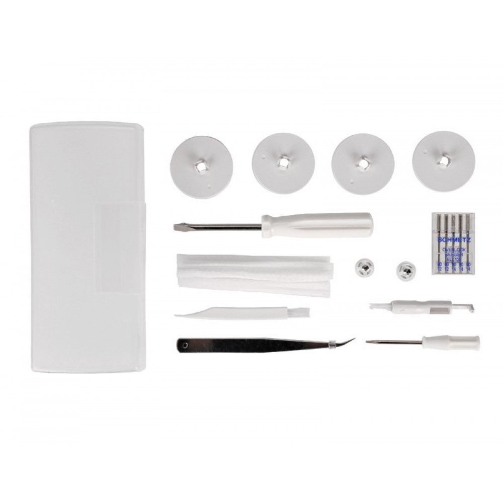 | Комплектация | Отвертка большаяОтвертка малаяПинцетНабор иглСетка для катушекЩетка для чисткиНитевдевательДержатель для катушекКрепежные винты (для фиксации доп. приспособлений)Коробка для хранения аксессуаровМягкий чехол |