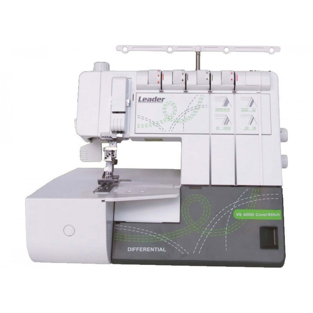 Распошивальная или плоскошовная швейная машина Leader VS 400D имеет четыре вида швов. Относительно неплохо зарекомендовала себя с работой над трикотажем.