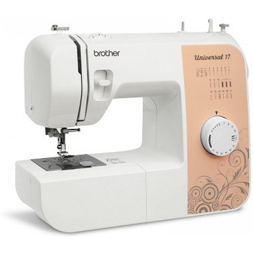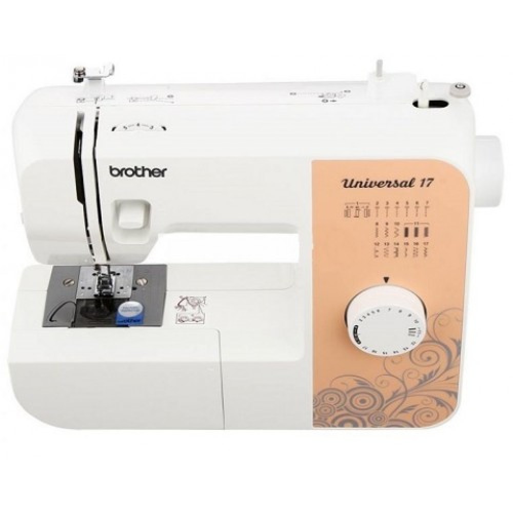 Электромеханическая швейная машина Brother Universal 17 идеальна для начинающих, проста в управлении, надежна и доступна по цене. Эта модель имеет набор основных необходимых для шитья строчек и предназначена для пошива легких, средних тканей. Она отлично послужит Вам в быту при ремонте и пошиве одежды. Машинка оборудована электроприводом - электрическим мотором, с помощью которого приводится в движение маховое колесо. Управление скоростью вращения происходит при помощи ножной педали: чем больше усилие нажатия, тем выше скорость шитья. Модель Brother Universal 17 выполняет 17 операций в число которых входят 16 различных строчек (прямая, зигзаг, эластичный зигзаг для пришивания резинки, потайная строчка для подшивки низа, универсальная, гофрирующая строчка), а так же бельевая петля, выметываемая в полуавтоматическом режиме.