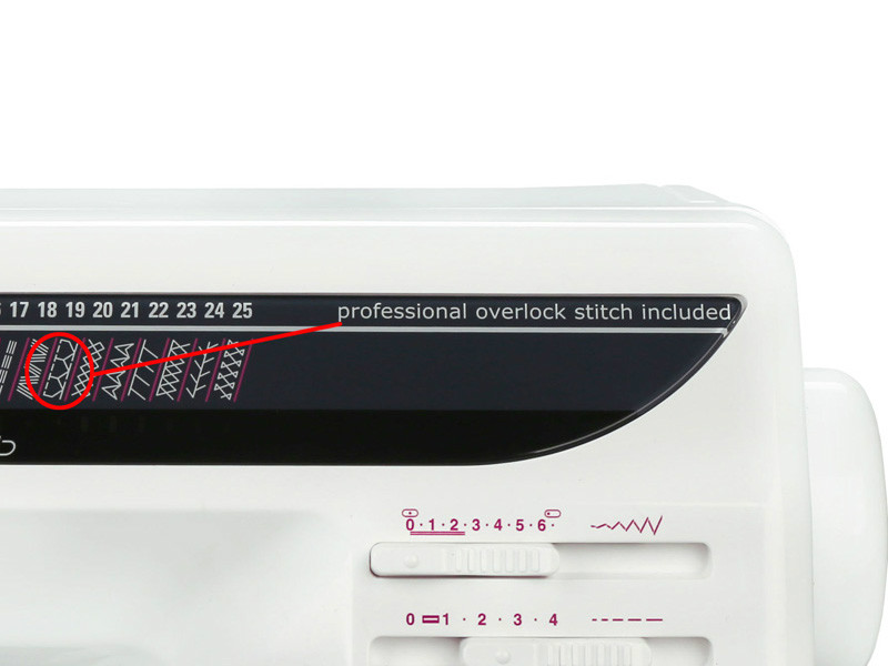 - Регулировка ширины зигзага от 0 до 6,5 мм
