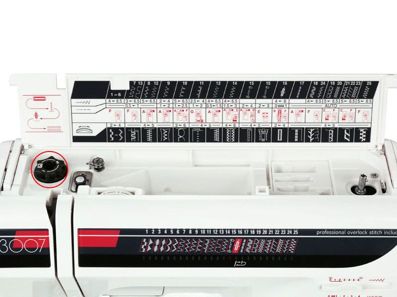 Чтобы петли и трикотажные строчки выглядели безупречно на любом виде тканей, включая ткани с выработкой, швейцарская машина ELNA 3007 имеет регулятор баланса строчек.