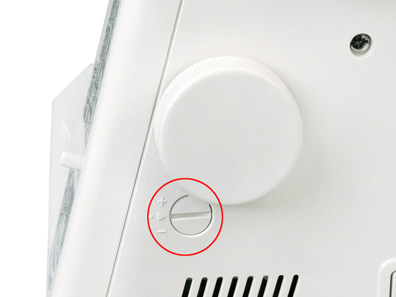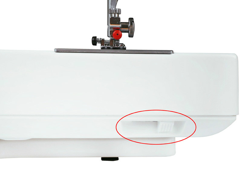 Если Вы увлекаетесь свободно-ходовой стежкой или просто хотите пришить пуговицу или выполнить штопку, отключите транспортер ткани при помощи переключателя расположенного сзади на свободном рукаве.