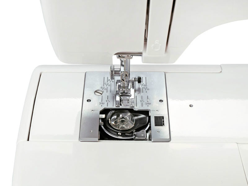 В швейной машине Elna 3007 горизонтальный ротационный челнок. Игольная пластина имеет направительные линии, указывающие расстояние от центрального положения иглы до края изделия.