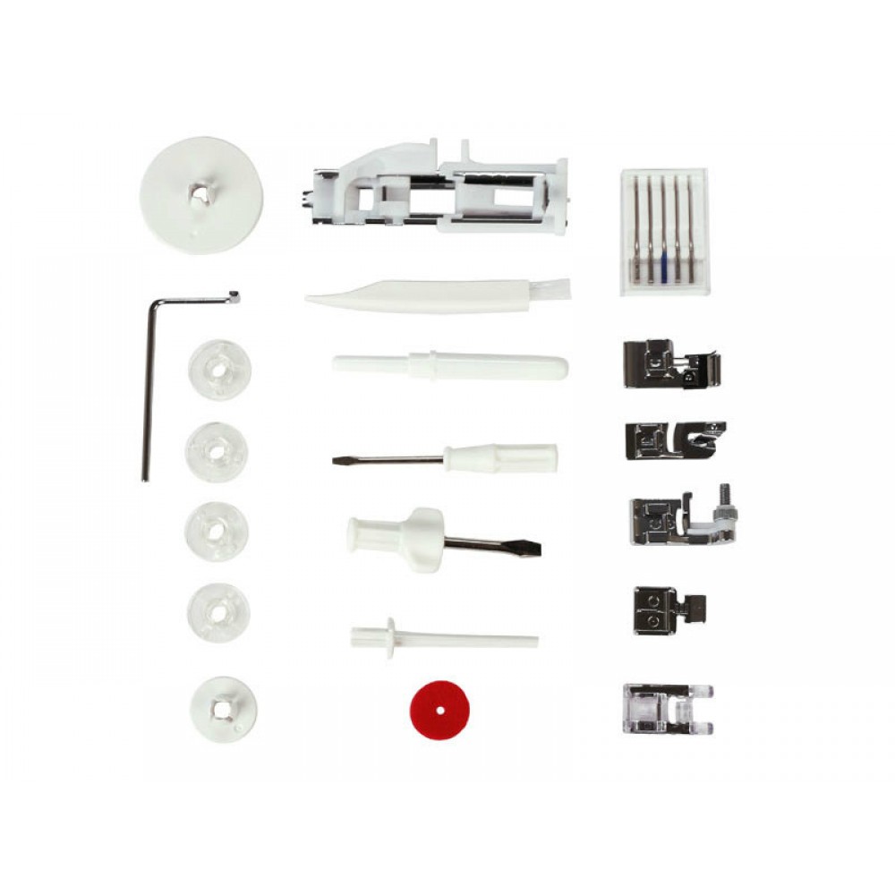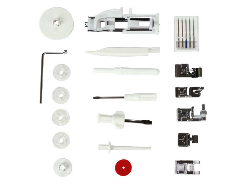 В стандартную комплектацию входят все необходимые аксессуары и лапки для безупречного выполнения любой швейной операции.
