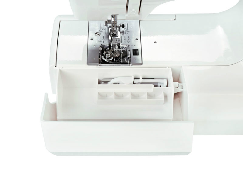 Съемный дополнительный столик имеет увеличенный размер для еще большего пространства для шитья.