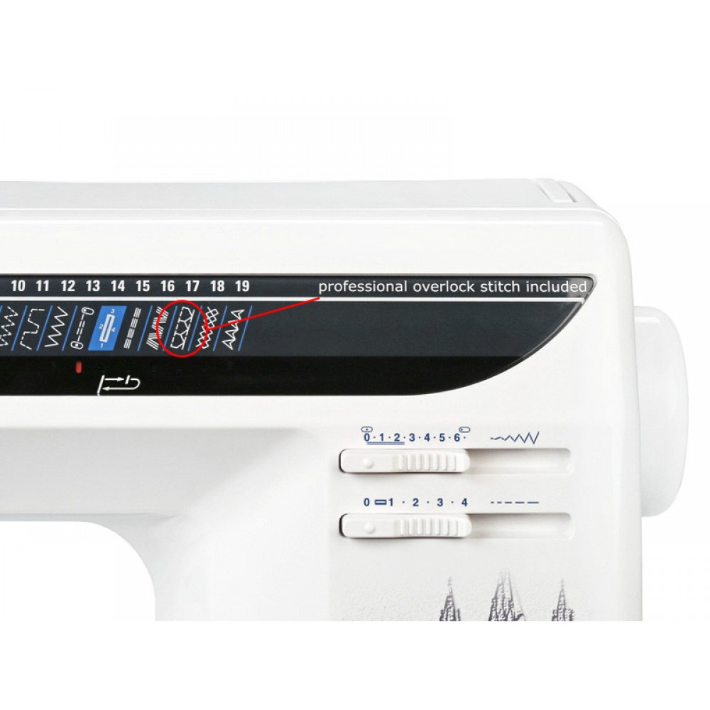 Швейная машина Elna 3007 имеет оптимальную для шитья длину стежка до 4 мм и ширину зигзага до 6,5 мм, которые плавно изменяются при помощи удобных регуляторов.