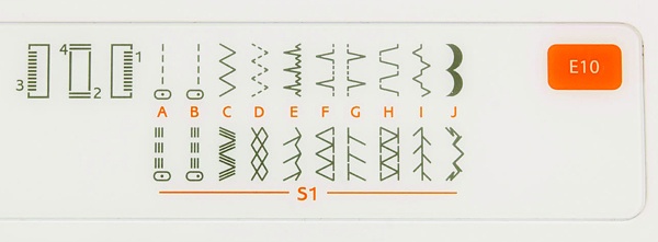 - 21 строчка, включая рабочие, декоративные и трикотажные швы, а также 4-шаговая петля.
