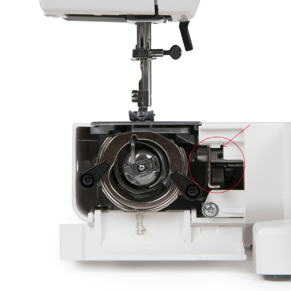 - Переключатель нижнего транспортера (Для тех, кто увлекается свободно-ходовой стежкой или просто хочет выполнить штопку, швейные машины Janome J имеют переключатель нижнего транспортера ткани. Просто передвиньте рычаг в левое положение и транспортер опустится.)
