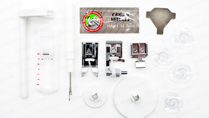 | Комплектация | Лапка стандартная-зигзаг (установлена на машине), для обметывания петель, для вшивания молнии, для потайной строчки, педаль, руководство по эксплуатации (инструкция), иглы стандартные, шпульки, вспарыватель швов, держатель для второй катушки, отвертка регулировки натяжения в челноке |