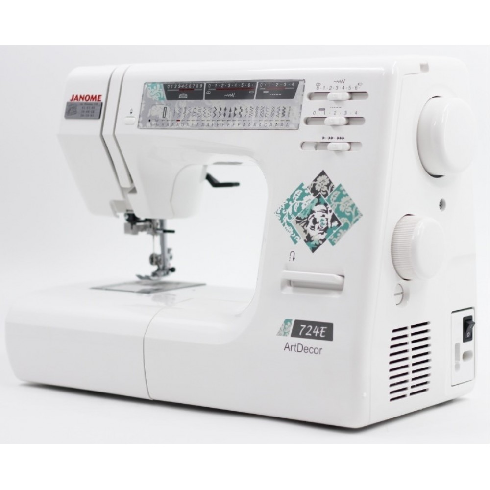 Швейная машина Janome ArtDecor 724E является отличной электронной швейной машиной. Она обладает горизонтальным челноком, свойственному удобной упрощенной заправкой, и возможностью следить за количеством ниток на шпуле. Также это позволяет забыть о смазке швейной машины .