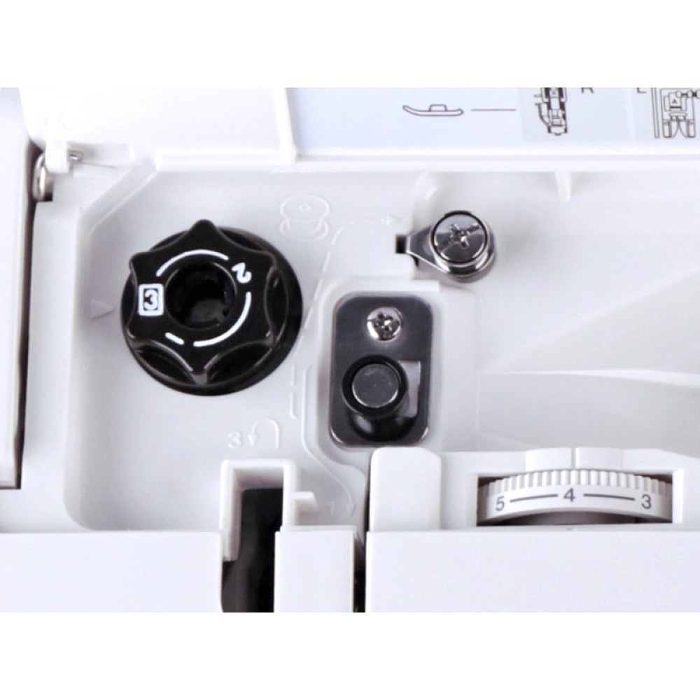 | Комплектация | Лапка универсальнаяЛапка оверлочная Лапка для сатиновых строчек Лапка для вшивания молнии Лапка для потайной строчки Лапка-подрубатель на 2мм Лапка для петли-автомат Направитель ткани для простегиванияВспарывательНабор игл (5шт.)ОтверткаЩетка для чисткиДополнительный нитедержательДержатель катушеки (2шт.)Фетровая прокладка на стерженьШпульки пластиковые (4 шт.)Ножная педальЖесткий чехол |