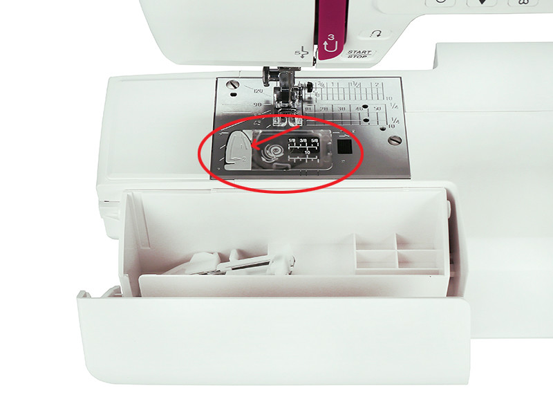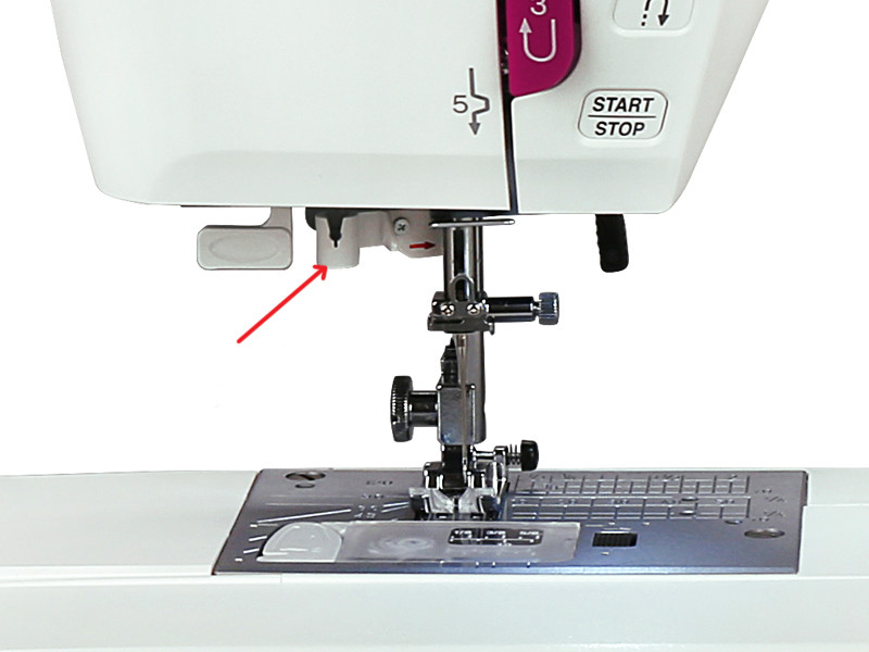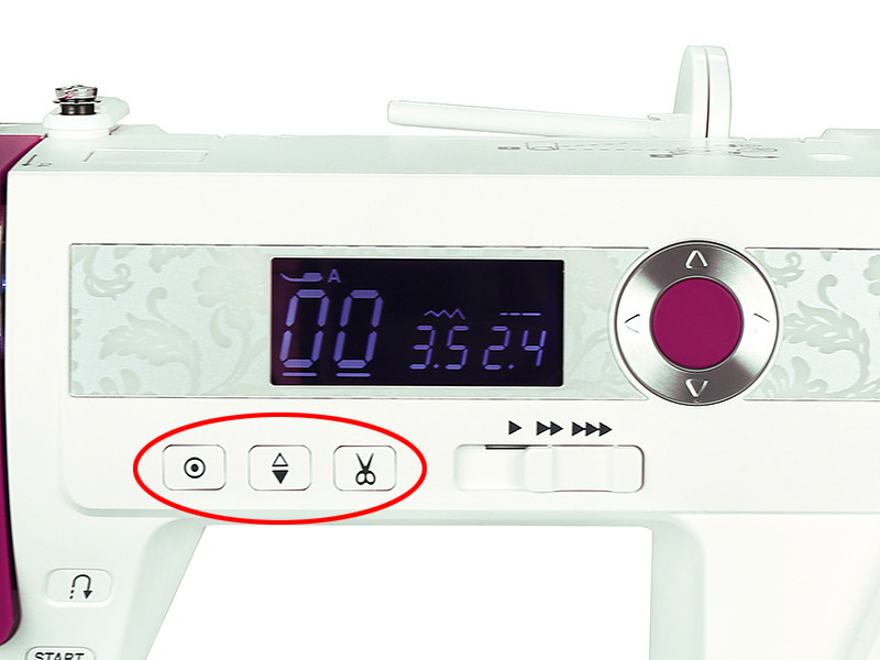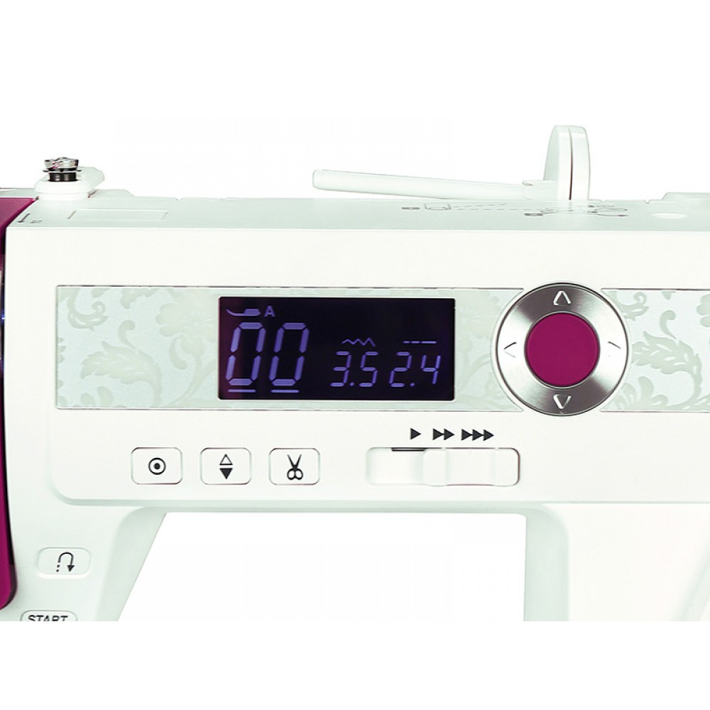 На передней панели машины ArtDecor 734D находится регулятор скорости, с помощью которого вы можете установить наиболее комфортную для вас скорость шитья. Скорость изменяется плавно, и при желании ее можно уменьшить вплоть до пошаговой.