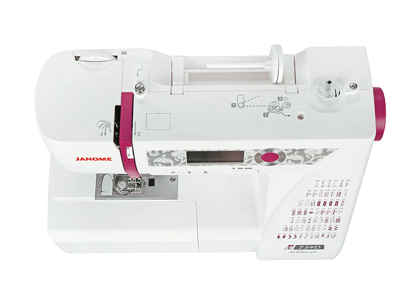 Компьютерная швейная машина Janome ArtDecor 734D имеет удобный встроенный нитевдеватель. Теперь вдеть нить в иглу, не составит труда!