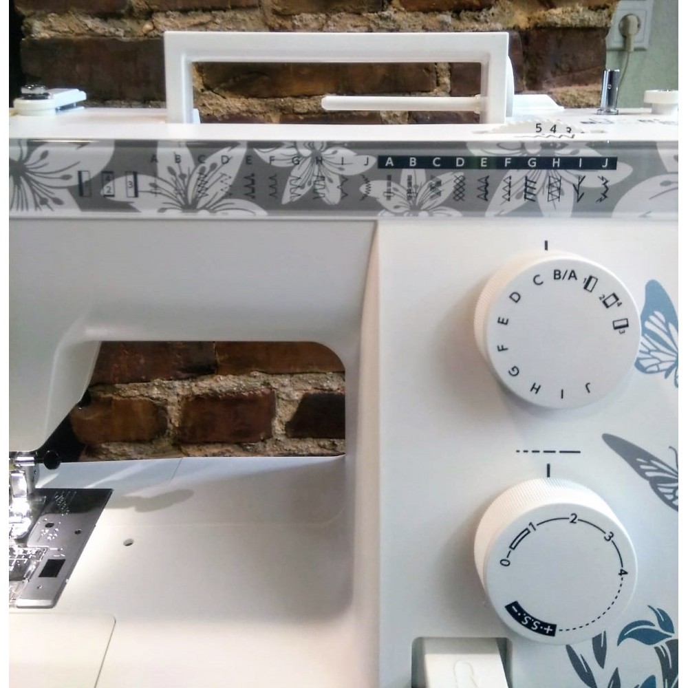 Правый дисковый регулятор поможет Вам плавно настроить ширину строчки и положение иглы. Величина ширины строчки влияет на то, на сколько широкими и выразительными будут декоративные строчки.