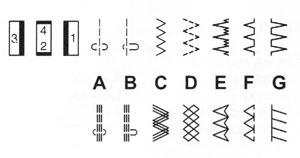 Для удобства работы на корпусе швейной машины нанесена справочная таблица, на которой представлены все имеющиеся в машине строчки.