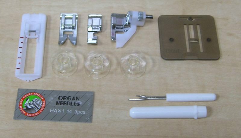 Швейная машина укомплектована необходимым и достаточным для полноценной работы набором дополнительных лапок.