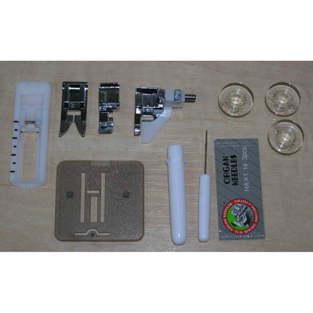 | Комплектация | Лапка стандартная-зигзаг (установлена на машине),лапка для обметывания петель,лапка для вшивания молнии,лапка для потайной строчки, педаль, руководство по эксплуатации (инструкция), иглы стандартные, шпульки, вспарыватьль швов |