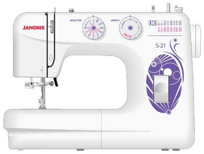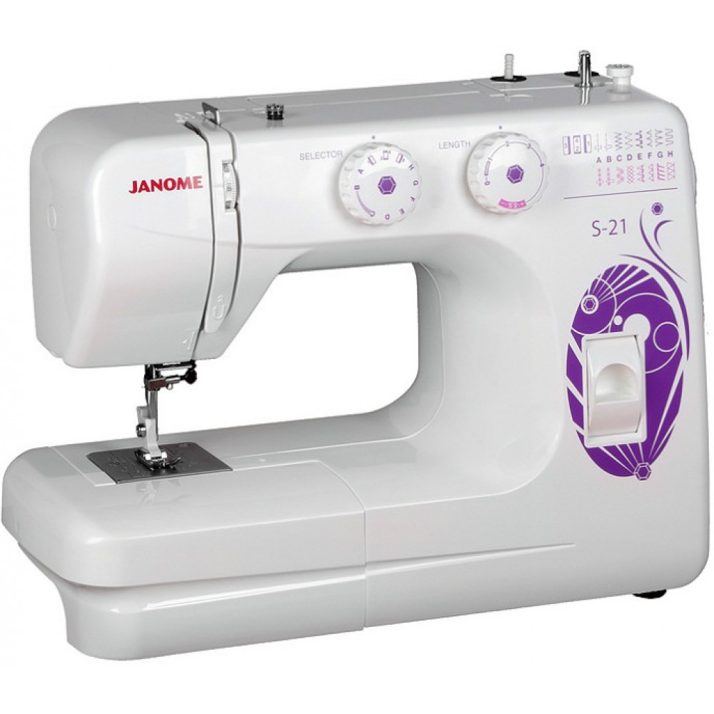 Швейная машина Janome S-21 неприхотливая швейная машинка для всех видов тканей. Недорогая модель швейной машины JANOME S-21 оснащена 17 швейными операциями, классическим вертикальным челноком и предназначена для шитья и ремонта одежды.