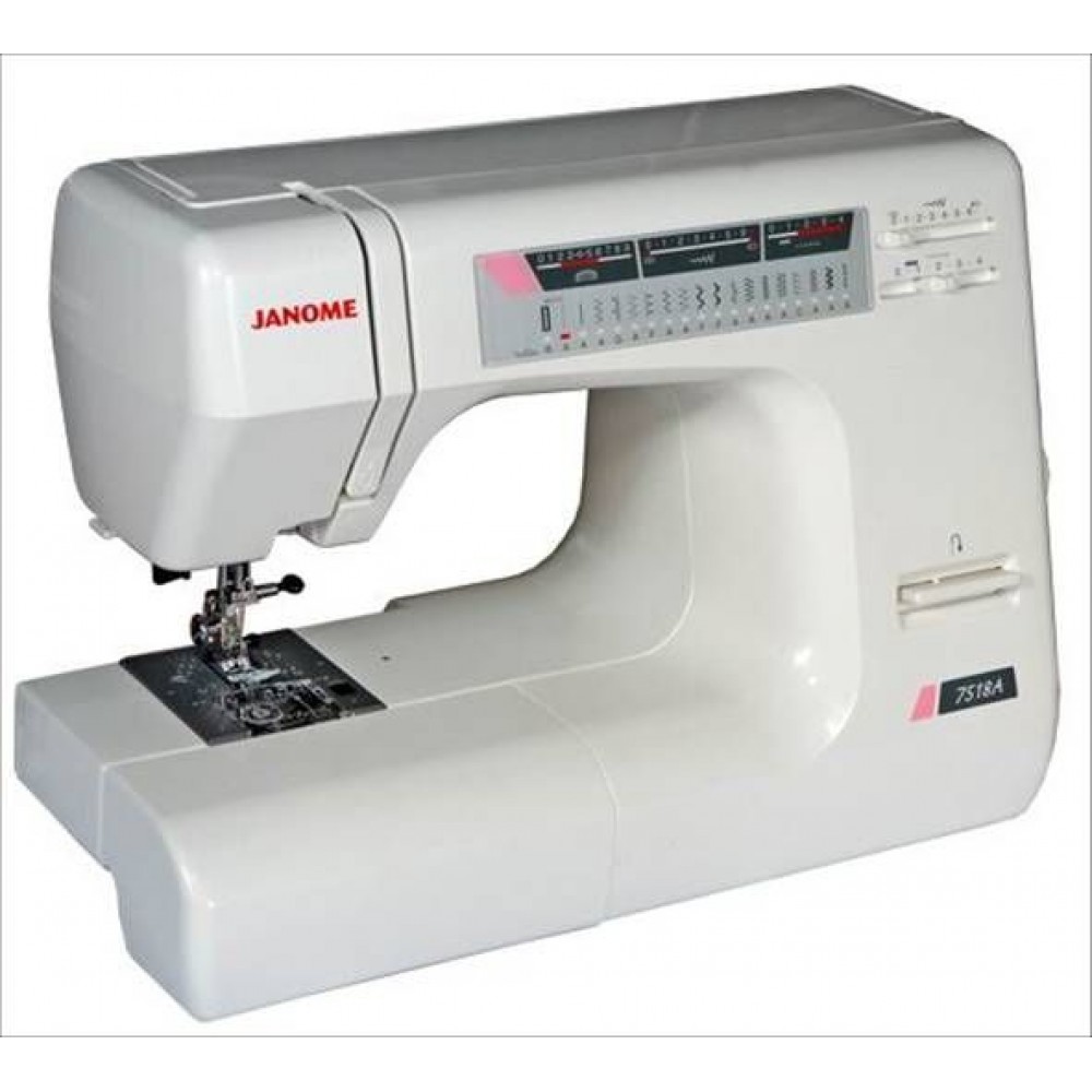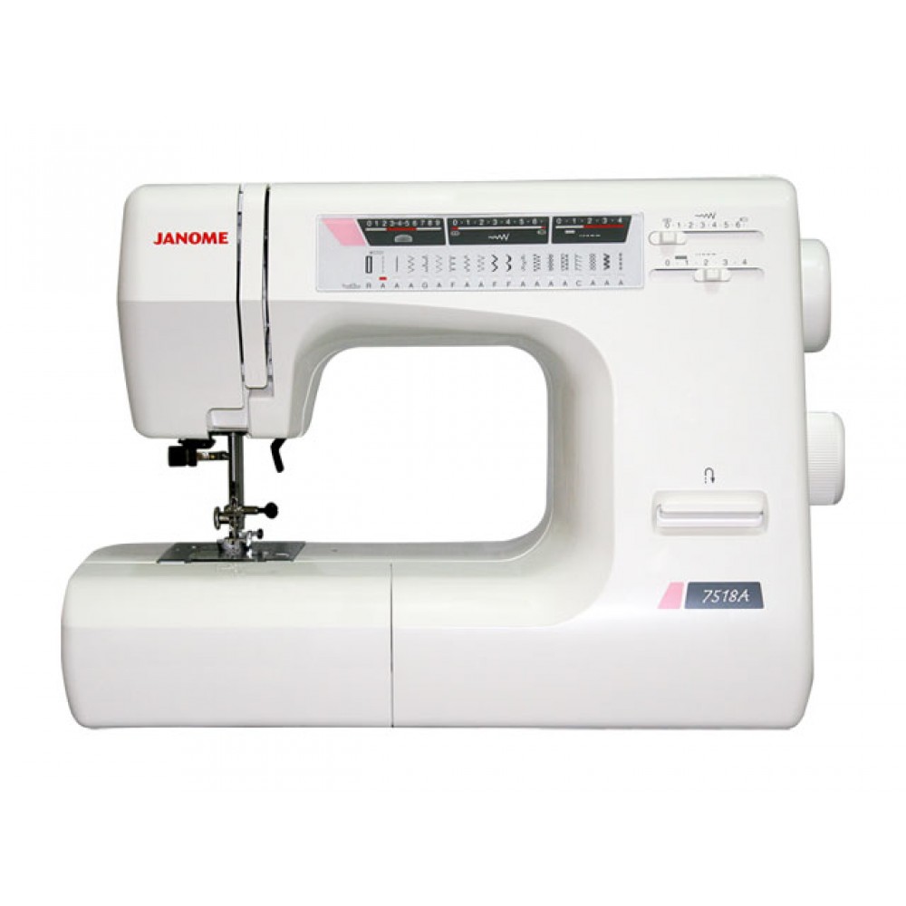 Швейная машина Janome 7518A является отличной электромеханической швейной машиной. Она обладает горизонтальным челноком, свойственному удобной упрощенной заправкой, и возможностью следить за количеством ниток на шпуле. Также это позволяет забыть о смазке швейной машины .