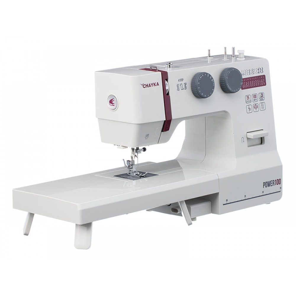 CHAYKA Power100 оснащена классическим вертикальным челночным устройством для эффективной работы. Удобный переключатель швейных операций находится на уровне глаз, облегчая управление машиной. С помощью клавиши реверс, вы сможете шить в обратном направлении или сделать закрепку. CHAYKA Power100 оснащена сервомотором мощностью 100Вт, который обеспечивает плавный контроль скорости, минимальный уровень шума, усиленный прокол иглы. Дополнительный подъём лапки поможет при работе с плотными материалами, а при работе с узкими деталями изделий используйте рабочее пространство свободного рукава. Штопальная пластина закрывает рейки нижнего транспортёра, что очень удобно для выполнения свободно-ходовой стёжки и пришивания пуговиц. В комплекте с машиной поставляются все необходимые аксессуары и расширительный столик, что делает работу с машиной еще более комфортной.