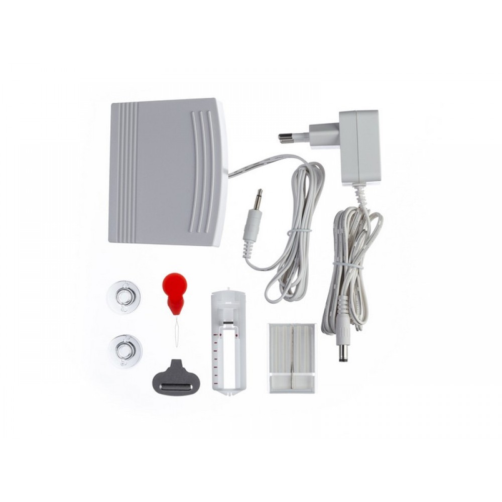 | Комплектация | Универсальная лапкаРамка для выполнения петлиШпульки - 3 шт. (2 шт. +1 шт. в машине)Катушка с нитью (установлена на катушечном стержне)Игла OrganРучной нитевдевательОтвёртка-ключПедальРасширительный столик |