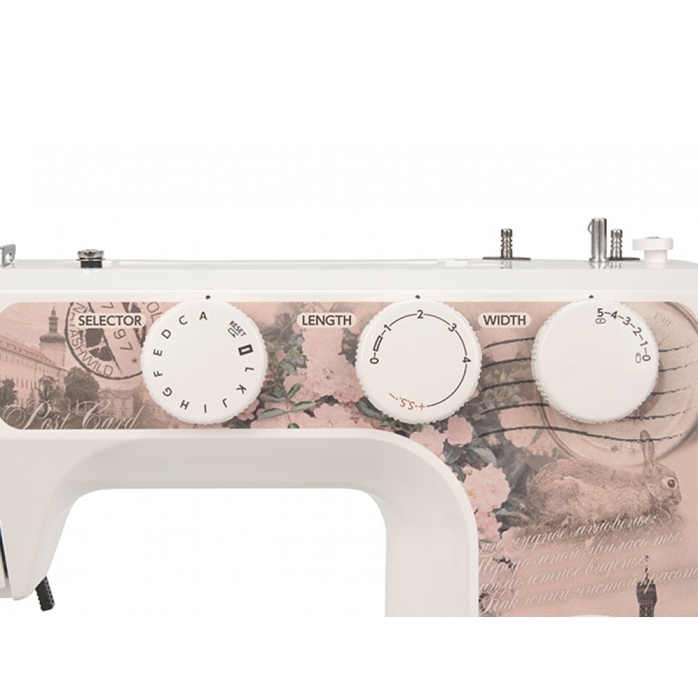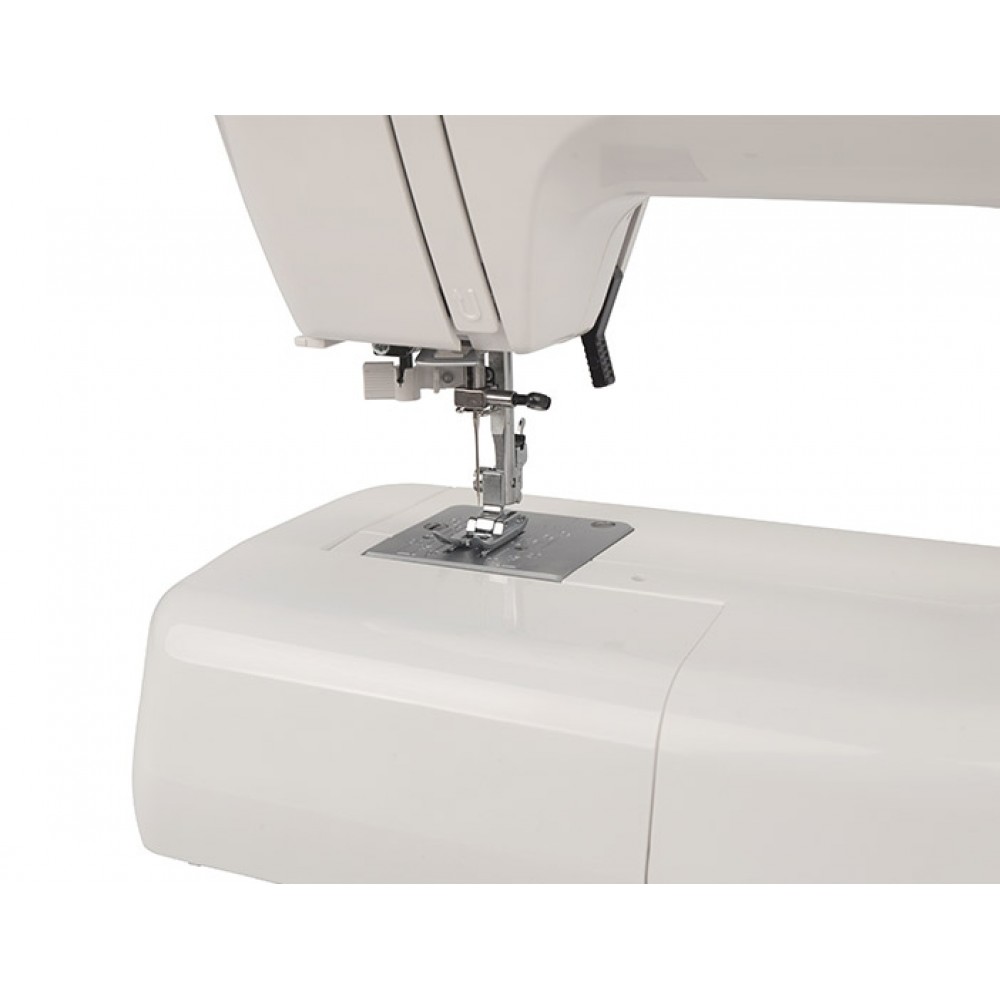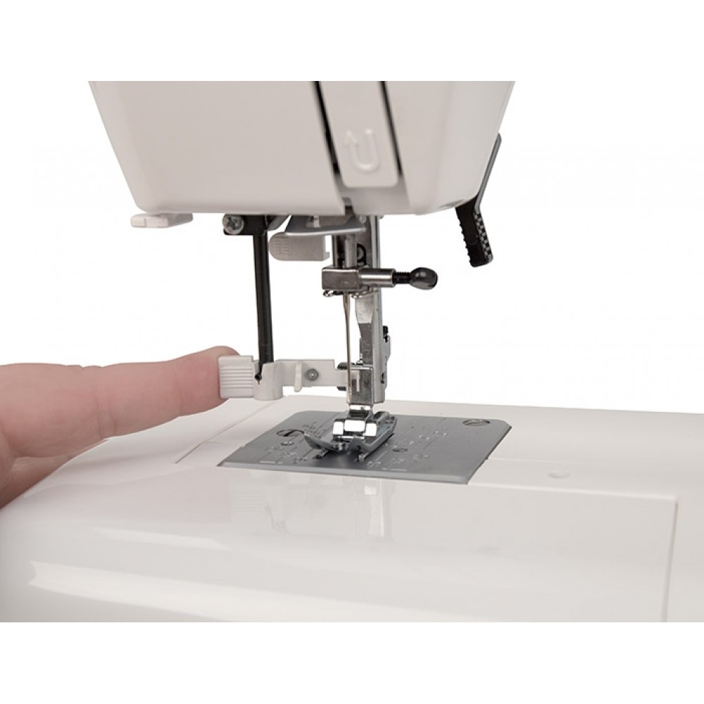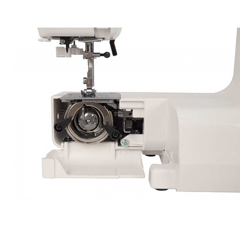 | Комплектация | Универсальная лапкаЛапка для вшивания молнии односторонняяРамка для петли-автоматЛапка для потайной строчкиМеталлическая лапка для атласных строчекШпульки пластиковые 5 шт. (4 шт. и 1 в машине)Набор игл 3шт.Вспарыватель. Педаль. Инструкция |