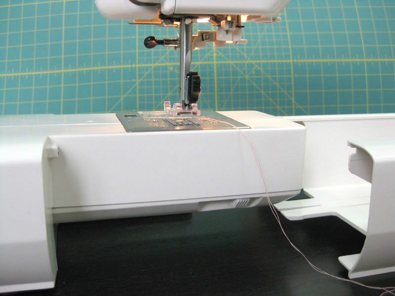 Если Вы увлекаетесь квилтингом со свободно-ходовой стежкой или просто хотите что-то заштопать, отключите нижний транспортер. Переключатель находится сзади на съемной рукавной панели. Просто передвиньте переключатель вправо и транспортер опустится. Внимание! При обратном подключении транспортер сразу не поднимается, но Вы можете смело начинать шить, при первом же шаге иглы транспортер включается в работу.