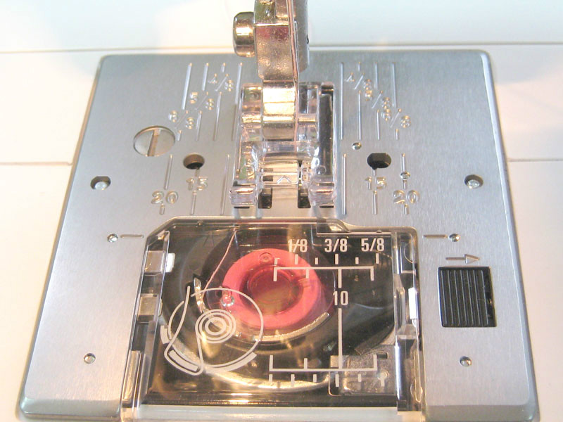 Игольная пластина имеет направительные линии в сантиметрах и дюймах, указывающие расстояние от центрального положения иглы. Направительные линии позволяют прокладывать аккуратные параллельные швы.