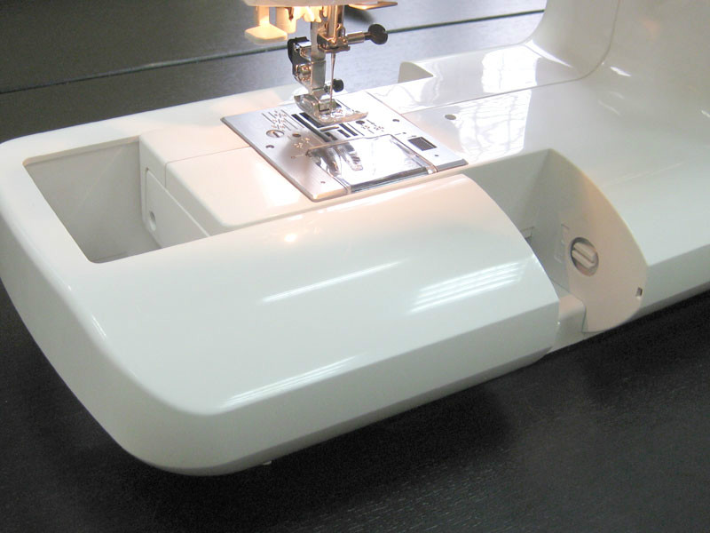 Если при шитье ткани с выработкой петля получается неравномерной или декоративная строчка растягивается или сжимается, воспользуйтесь регулятором баланса строчки. Регулятор баланса строчки находится справа под съемным рукавом.