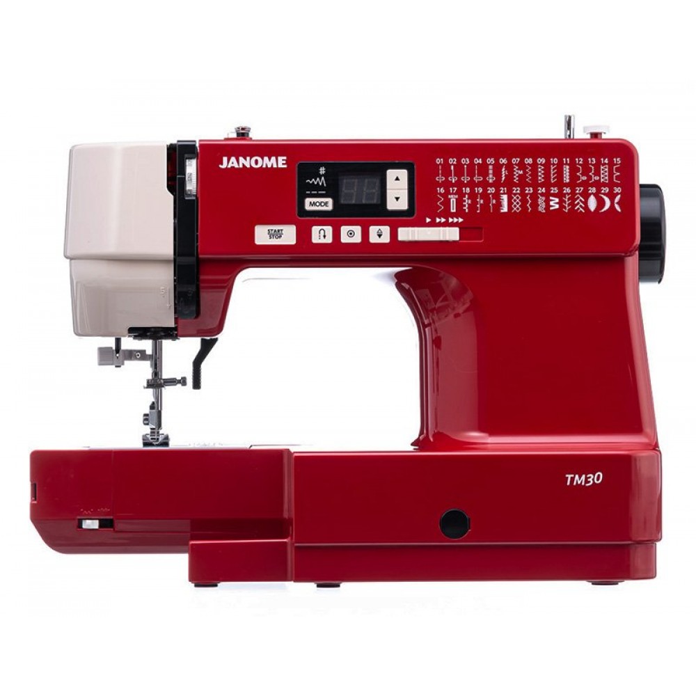 Швейная машина Janome TM30 — компьютерная швейная машинка, в интересном дизайне, с широким функционалом для выполнения разных задач. В Janome TM30 предусмотрено 30 швейных операций, необходимые для качественной работы, включая оверлочные, рабочие, декоративные строчки, а также программируемую петлю.